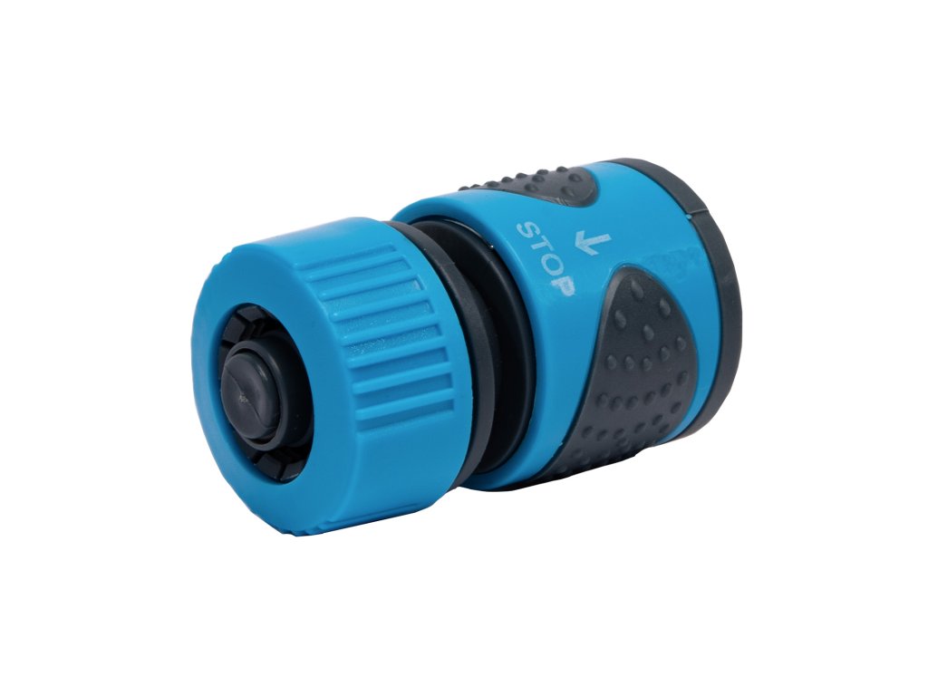 Hadicová rychlospojka umožňuje rychlé a pohodlné připojení ke kohoutu. Protiskluzové úchyty objímky pro snadné připojení/odpojení mokré spojky. Odpojení i připojení pouhým zatažením. Západky z kvalitního plastu. Instalace bez použití dalšího nářadí. Stop ventil zajišťuje, že při vytažení rozstřikovače, rozstřikovacích pistolí či dalších komponentů voda z hadice nevytéká.