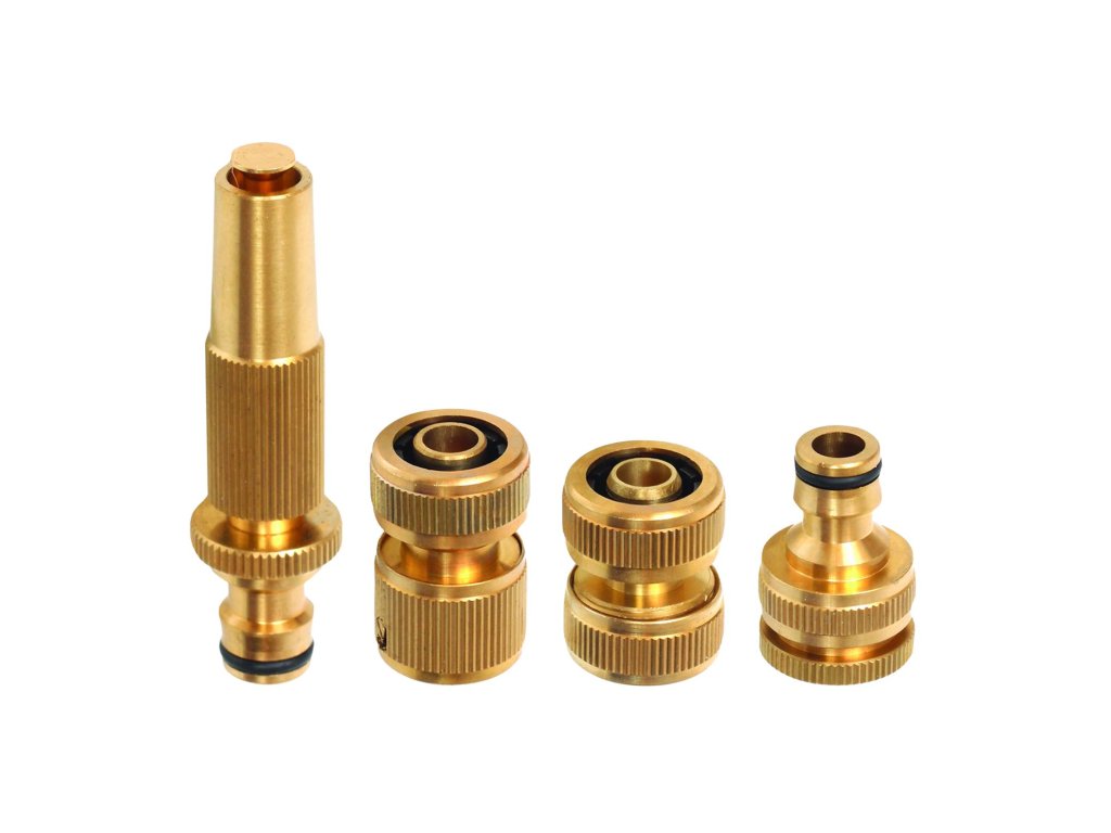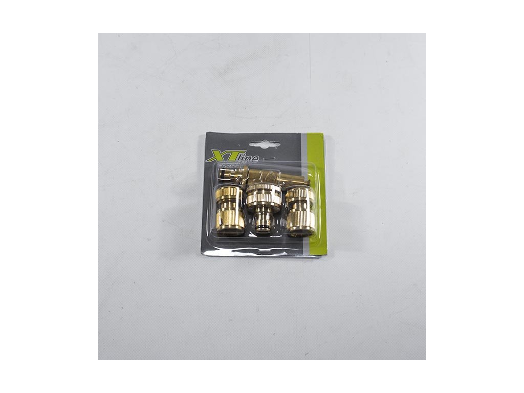 › Zahrada › Rozstřikovače, spojky, rychlospojky, redukce, ventily › Rozstřikovače, rozprašovače, zavlažovače › XTLINE Sada 4ks - hubice, adaptér 3/4”-1”, 2 rychlospojky