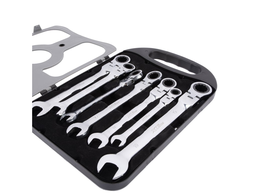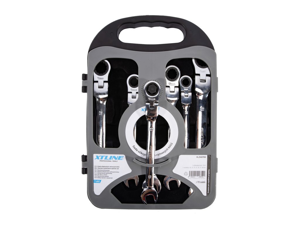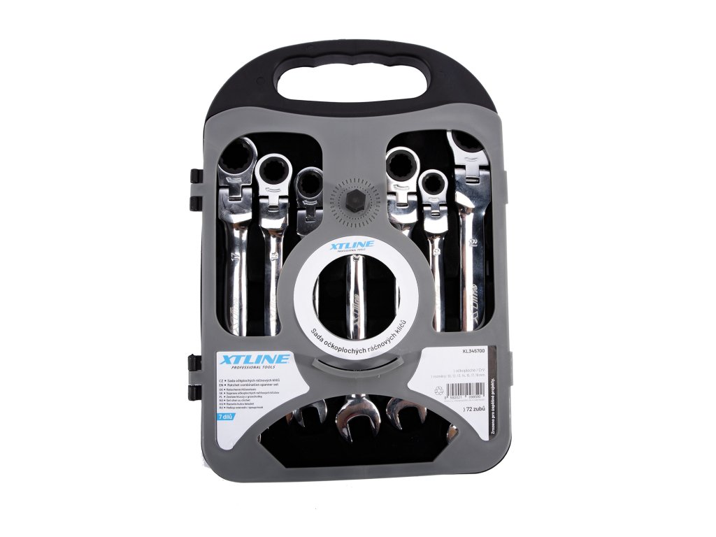 XTLINE Sada očkoplochých ráčnových kloubových klíčů, chrom 72 zubů, 7 dílů | 10-19 mm, plastový obal