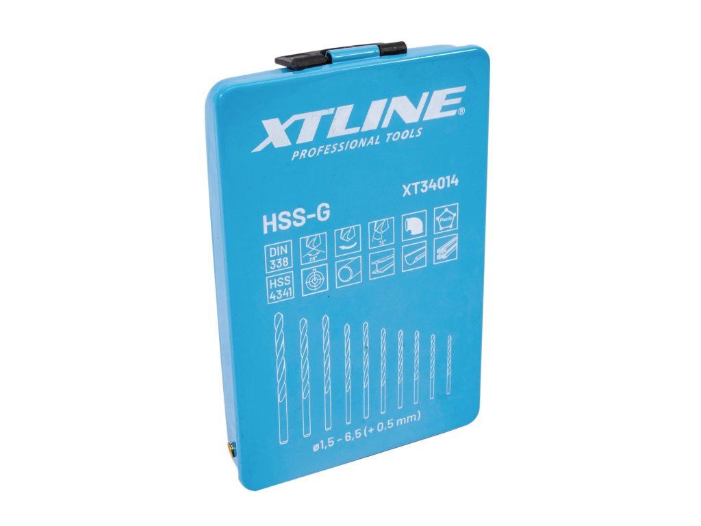 XTLINE Sada vybrušovaných vrtáků do kovu HSS-G, 11 dílů | 1.5-6.5 mm, kovový box