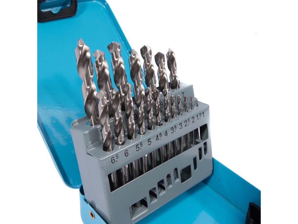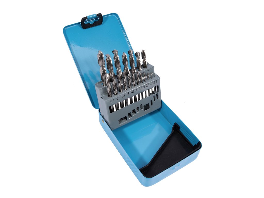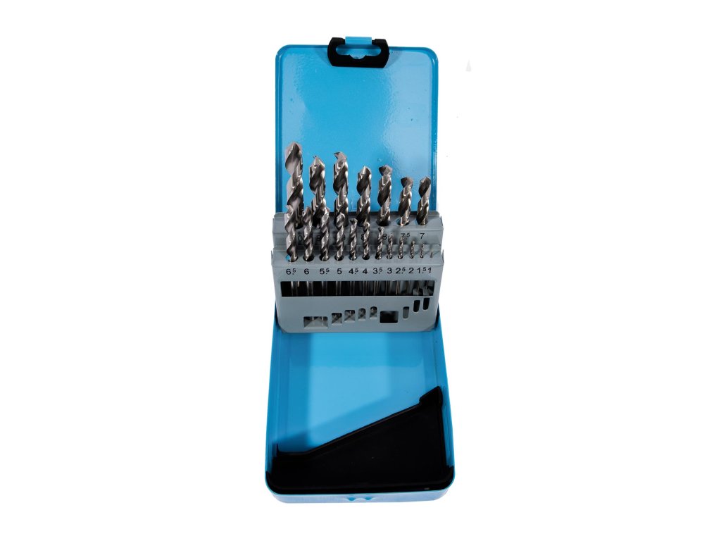 Sada vybrušovaných vrtáků HSS-G z rychlořezné oceli vyrobených dle normy DIN 338 s vrcholovým úhlem 118° pro vynikající kvalitu a přesnost vrtání. Vhodné pro vrtání různých materiálů, jako jsou legovaná i nelegovaná ocel, ocelolitina, temperovaná i tvárná litina, slitiny hliníky, bronz a mnoho dalších materiálů, u kterých hraje hlavní roli přesnost vyvrtaného otvoru. Jednotlivé rozměry vrtáků v sadě jsou odstupňovány po 0,5 mm.