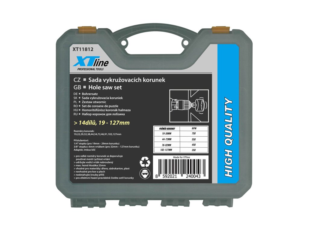 XTLINE Sada vykružovacích korunek 14 dílů | 19-127 mm, plastový box