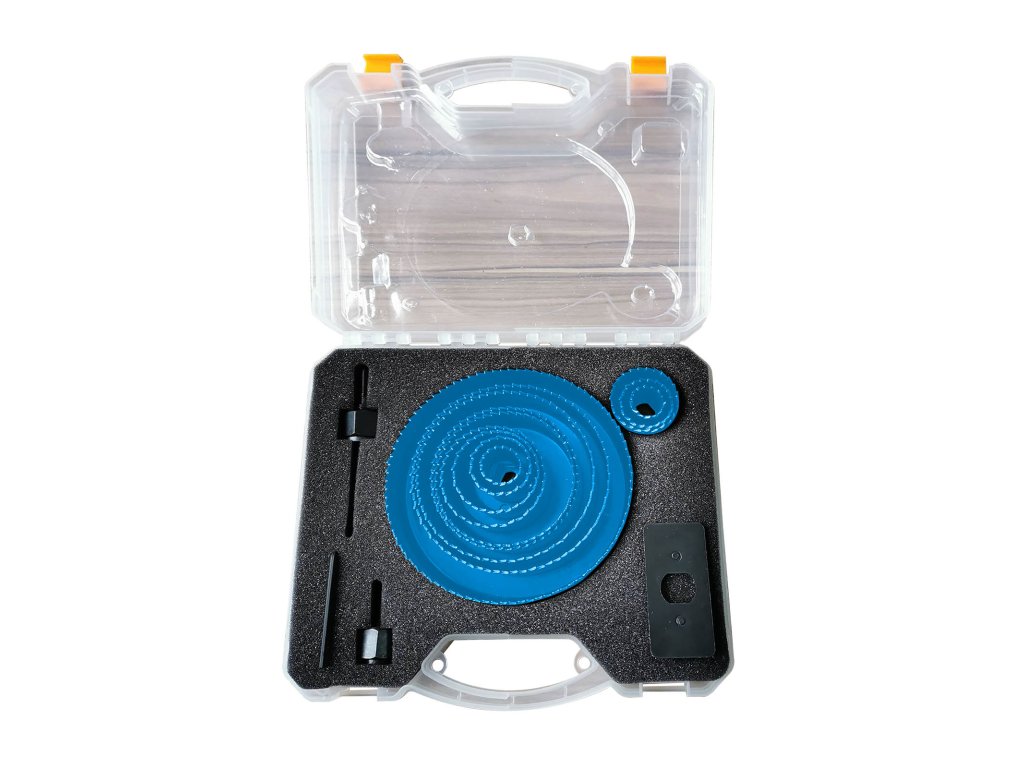 XT11812 Sada vykružovacích korunek 14 ks – univerzální sada pro rychlé a čisté vyřezávání otvorů do dřeva, plastu, gumy, laminátu, sádrokartonu a překližky. Obsahuje široký rozsah průměrů a kompletní příslušenství pro pohodlnou práci.