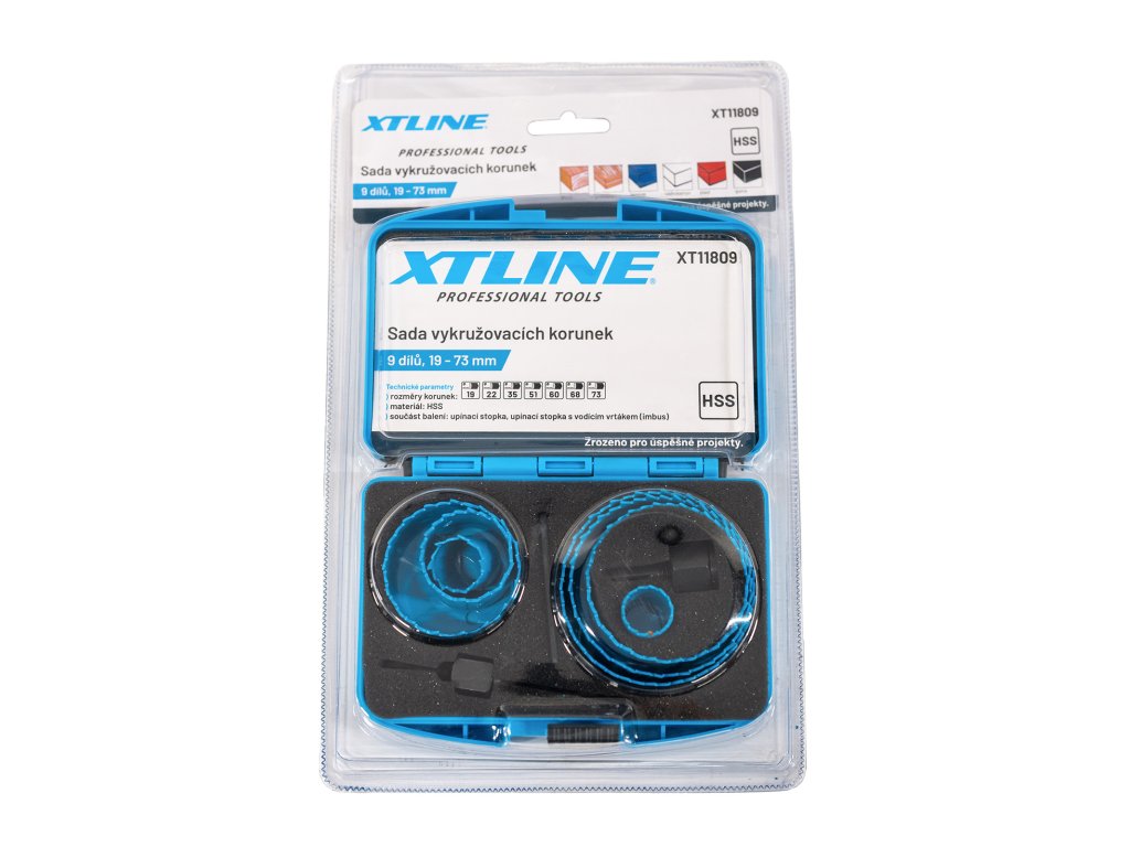 XTLINE Sada vykružovacích korunek 9 dílů | 19-73 mm, plastový box