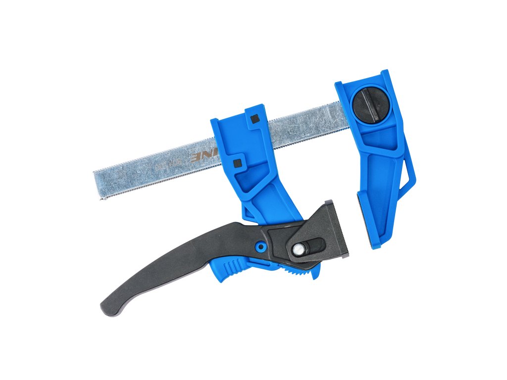 Rychloupínací páková svěrka umožňuje snadné a rychlé upnutí materiálu jednou rukou. Díky ergonomické páce je manipulace pohodlná a bez námahy. Silná upínací síla (max.1200 N) a plastové čelisti s ochrannými krytkami chrání povrch materiálu před poškozením. Svěrku lze přestavět ze stahovací na rozpínací. Sedlo svěrky je nastavitelné v rozmezí 120°.Doplňkové parametry