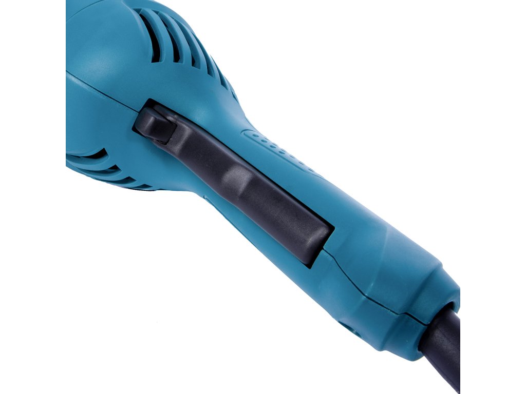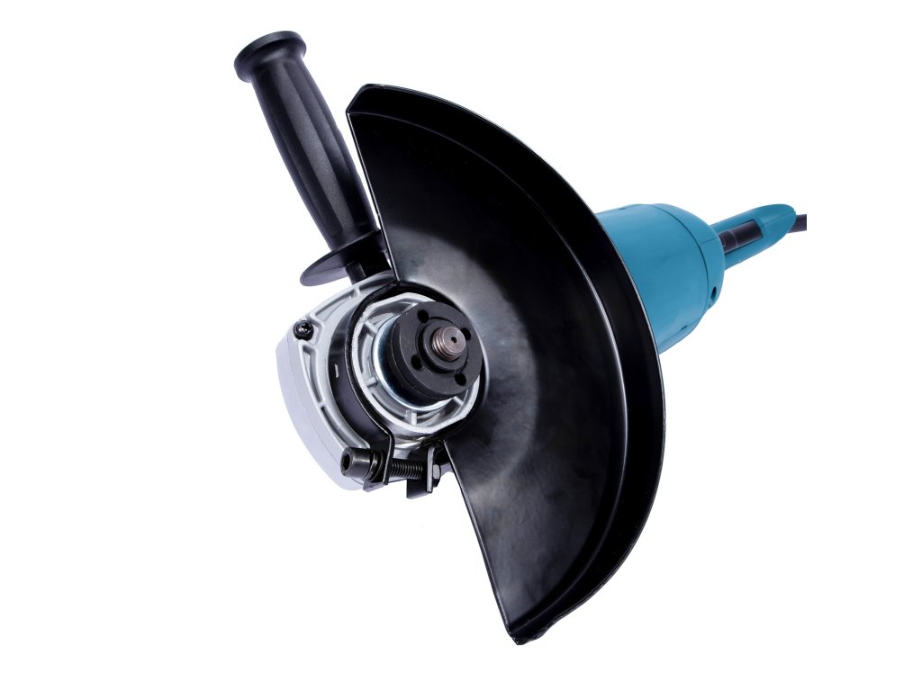 Stroj je vybaven spínačem s bezpečnostní pojistkou a ochranou proti samovolnému rozběhu po výpadku napětí. Funkce soft‑start omezuje spouštěcí proud a minimalizuje zpětné rázy. Ergonomický štíhlý design s možností nastavení rukojeti ve třech pozicích zajišťuje pohodlnou práci i v těsných prostorách.