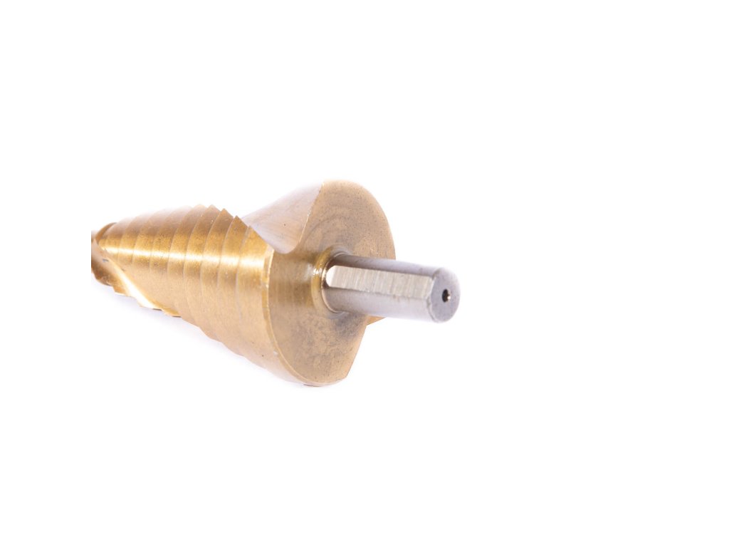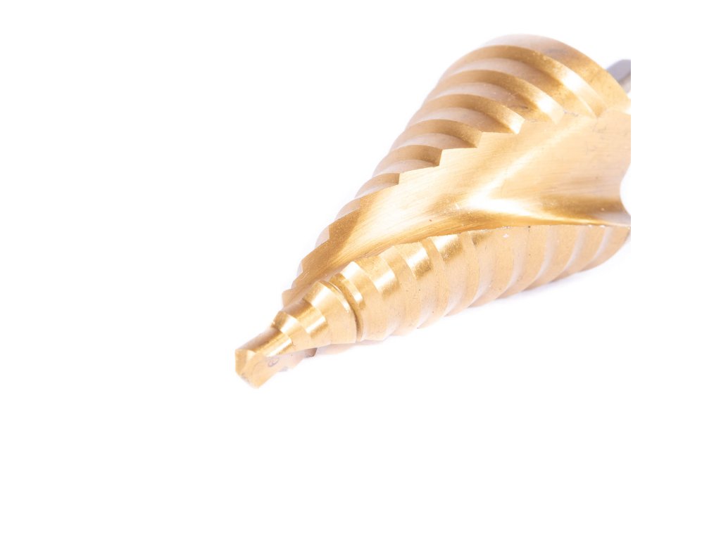Vrták stupňovitý slouží pro vyvrtání kruhových otvorů v ocelových plátech (i měkčí materiály jako dřevo, plast...).Plynulé a bezhrotové vrtání bez deformace materiálu. Díky titanovému povrchu je vrták mnohem odolnější, použitelný téměř ve všech aplikacích.Výhodou TiN je dobrá elasticita a adheze, snižuje energetickou náročnost obrábění, chrání nástroj proti opotřebení na čele i hřbetu nástroje.Vhodné pro aku/elektrické vrtačky.
