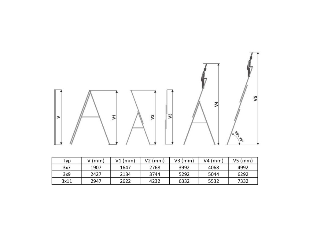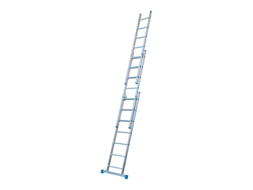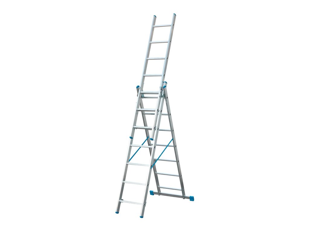 Trojdílný žebřík vyniká svou univerzálností a rychlou a snadnou manipulací. Lze použít jako jednoduchý, dvojitý nebo trojitý výsuvný a samostatně stojící žebřík. V poloze štaflí nabízí zvětšení dosahu pomocí vysunutí pohyblivého dílu. Žebřík lze postavit na schody, meze a výškově rozdílné terény. Kvalitní hliníkové profily s prolisy umožňují při nízké váze žebříku jeho tuhost při používání. Pojistka pro zajištění jednotlivých dílů žebříku. Možnost využití žebříku ke schodové úpravě.