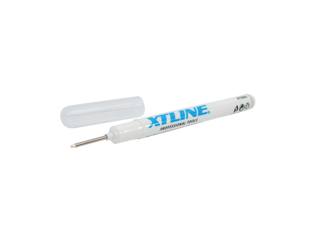 Permanentní hloubkový značkovač vhodný pro celou řadu běžných suchých povrchů a stavebních materiálů, jako jsou dřevo, kovy, plasty, kámen, obklady, sklo apod. Tenký kovový hrot umožňuje pohodlné značení v hloubkovém rozsahu až 20 mm. Po dokončení značení vždy vracejte víčko značkovače zpět na hrot. Nenechávejte hrot značkovače po dobu delší než 10 minut obnažený. V opačném případě hrozí vysychání náplně nebo její snížená účinnost a viditelnost. Chraňte hrot popisovače před kontaktem s vodou, mastnotou a nečistotami. Popisovač na bázi alkoholu. Upozornění: Bílý inkoust je velice náchylný na vysychání. K úplnému nebo částečnému vyschnutí může dojít už po 10-15 minutách při ponechání otevřeného víčka. Po každé aplikaci vždy důkladně chraňte popisovač krycím víčkem.