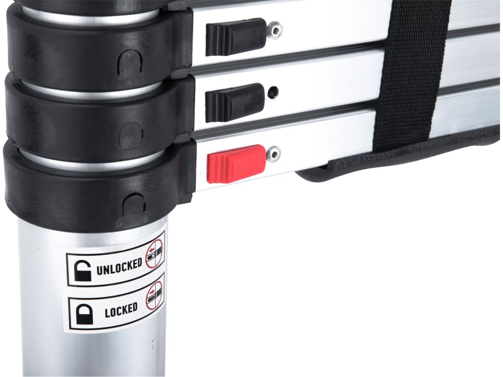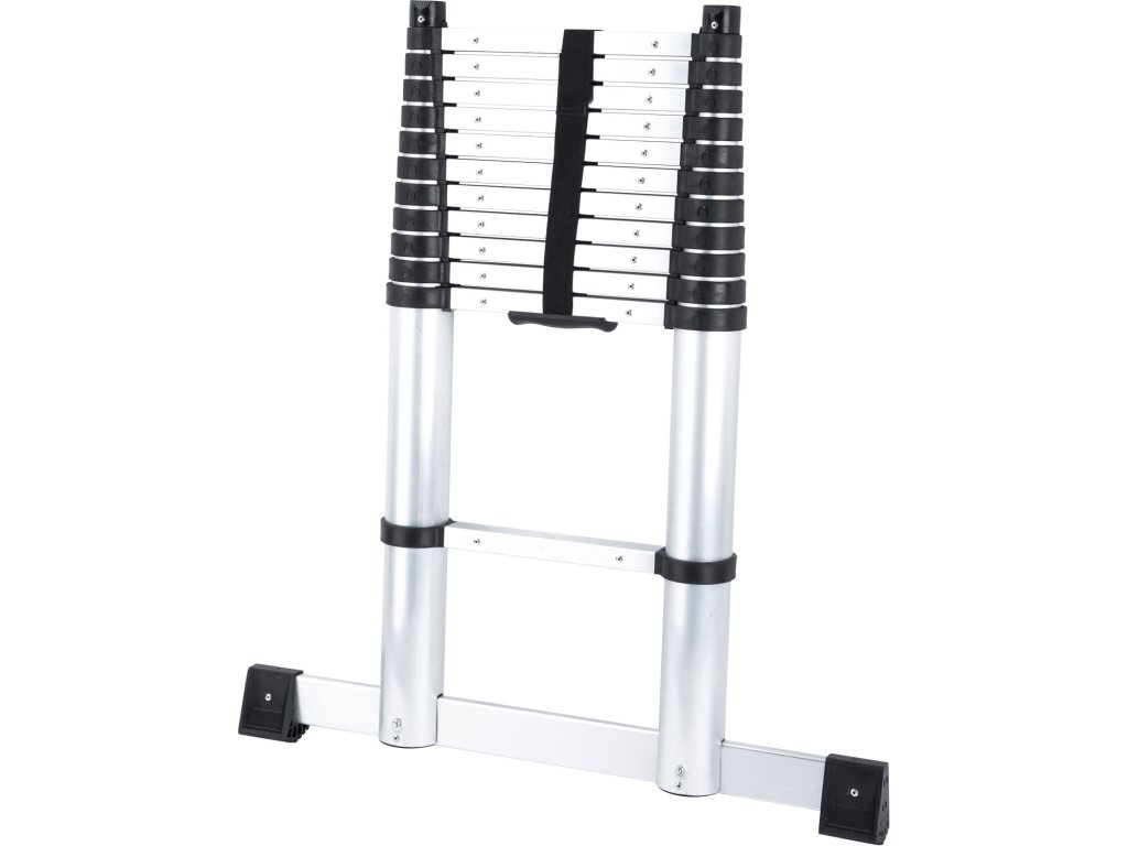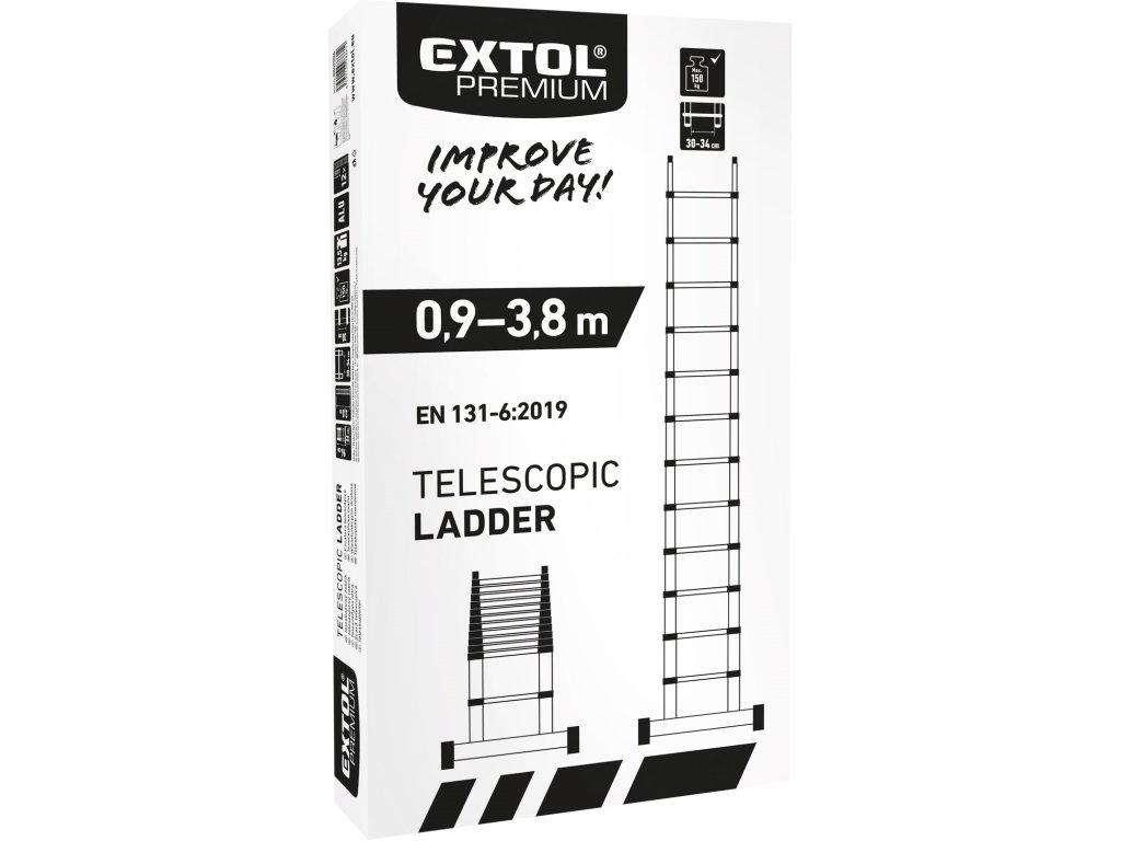 doplňující parametr | max. výška 3,8m, rozměry složeného žebříku v.96 x š.86cm, nosnost 150kg, 12 příček, hmotnost 13,5kg, šířka základy (v místě na p |