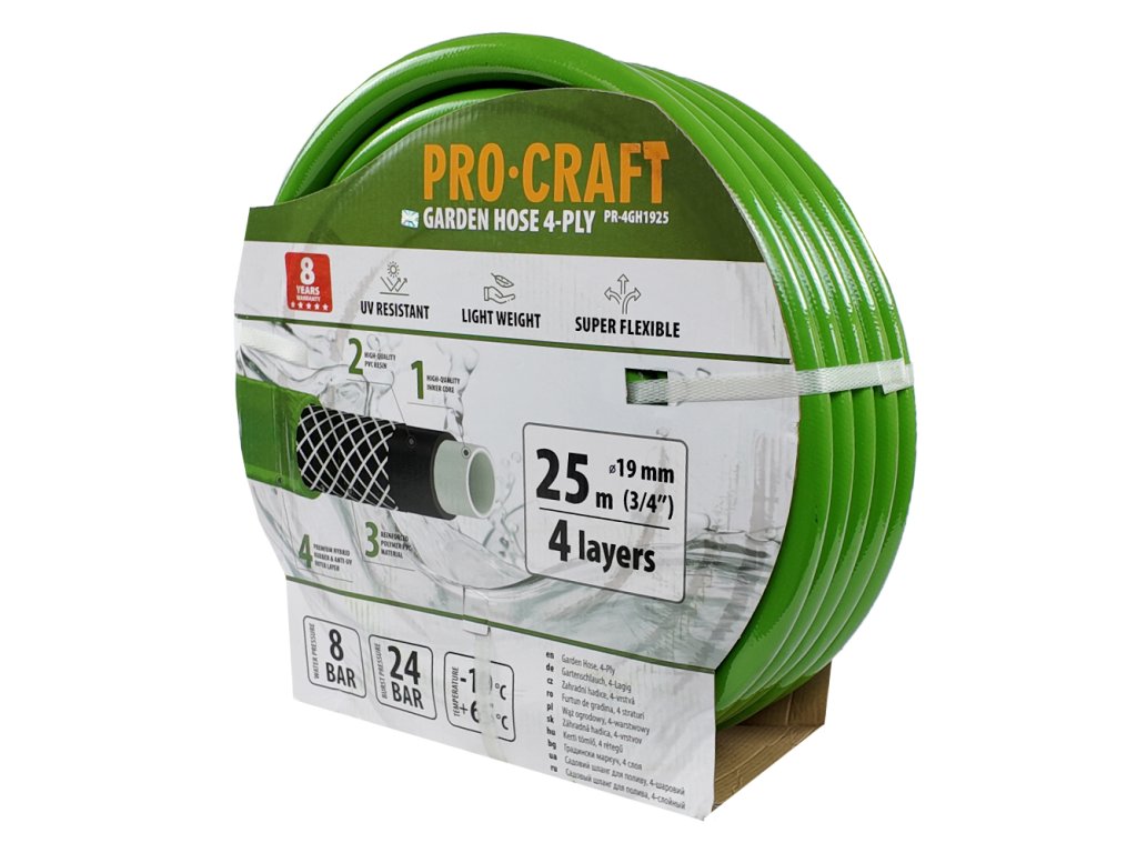 Zelená zahradní hadice Procraft PR-4GH1925 4 vrstvy, 3/4" 25 m | PR-4GH1925