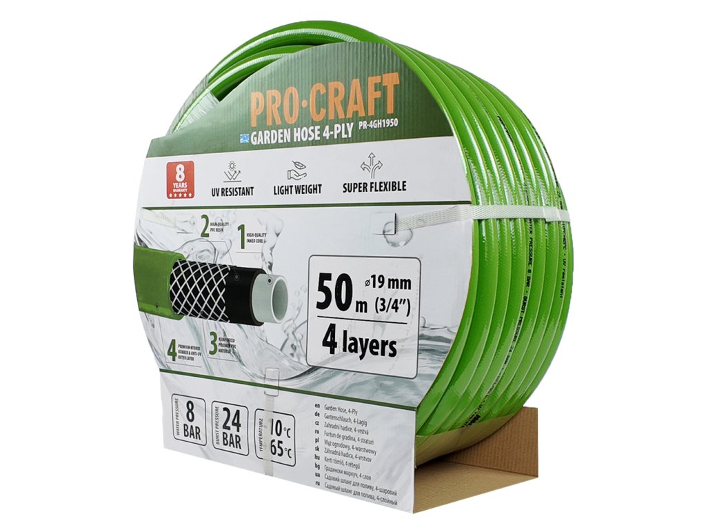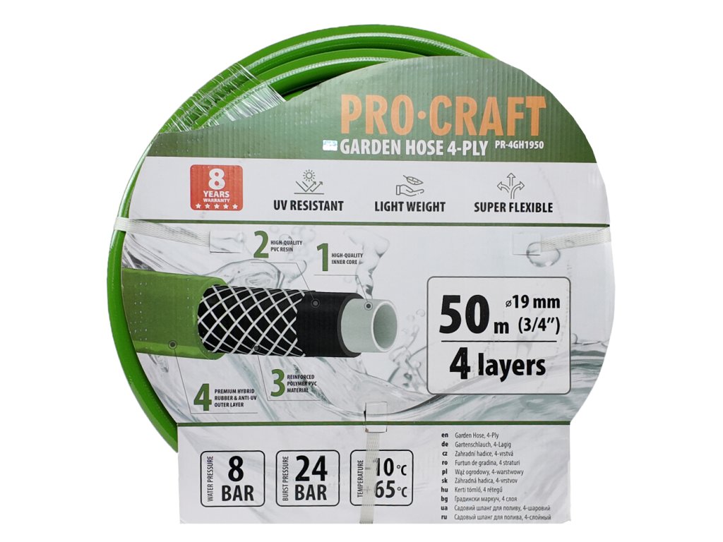 Zelená zahradní hadice Procraft PR-4GH1950 4 vrstvy, 3/4" 50 m | PR-4GH1950